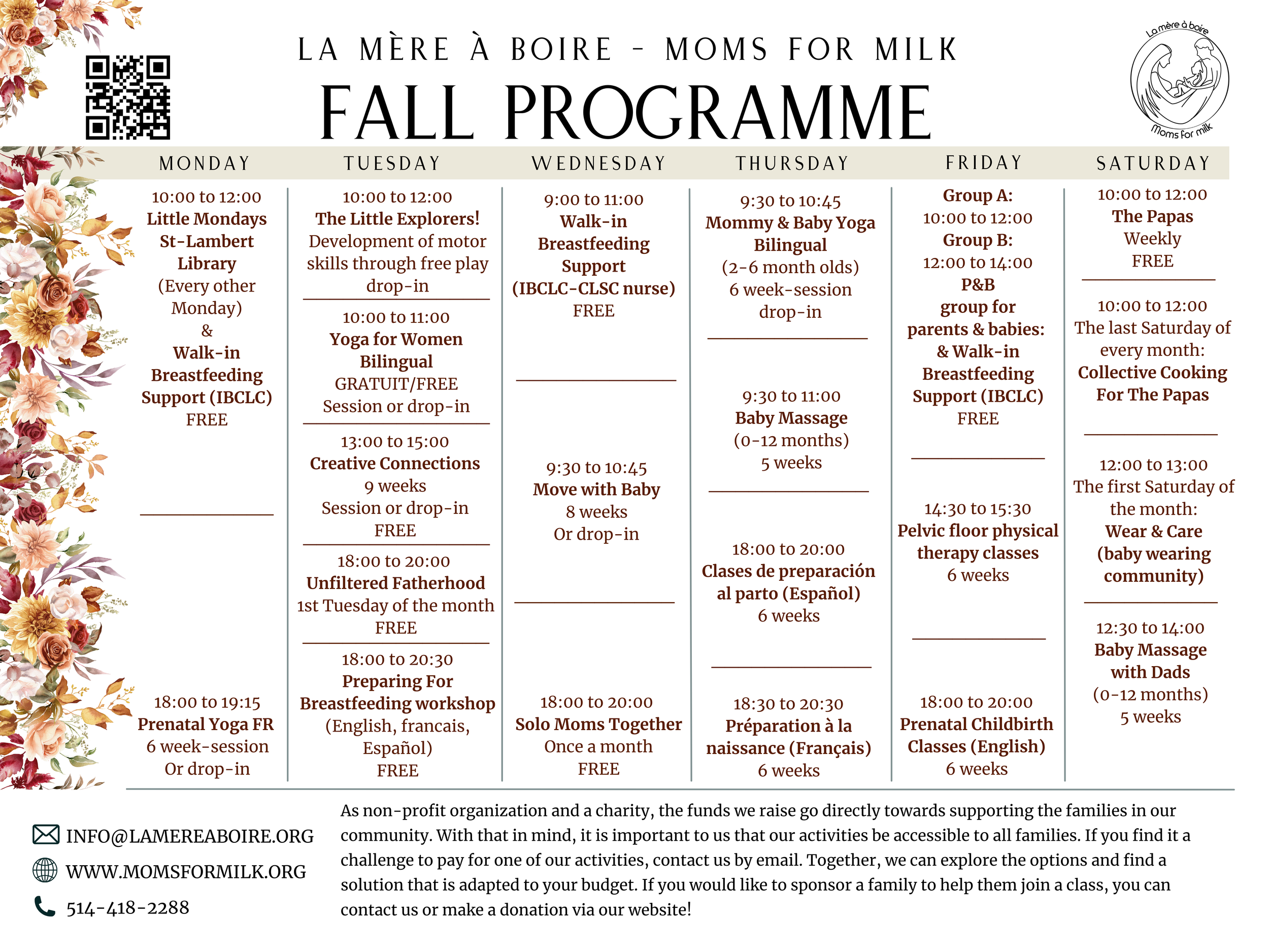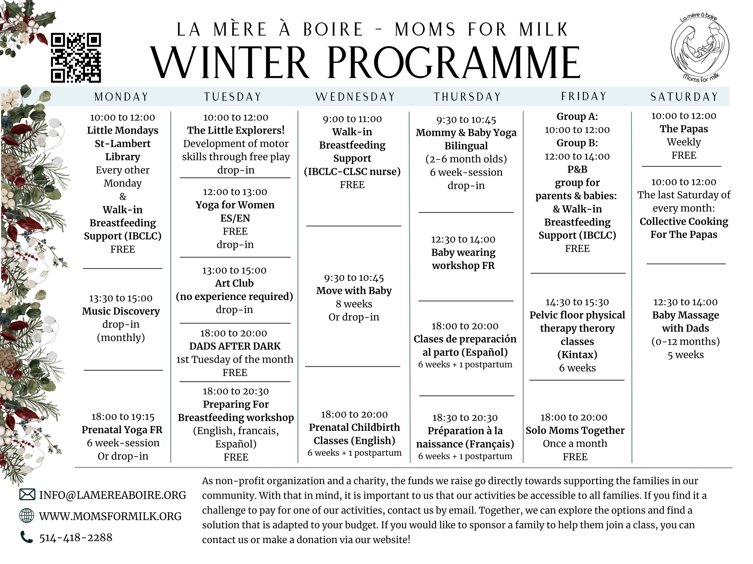 As non-profit organization, the funds we raise go directly towards supporting the families in our community. With that in mind, it is important to us that our activities be accessible to all families. If you find it a challenge to pay for one of our activities, contact us by email. Together, we can explore the options and find a solution that is adapted to your budget.